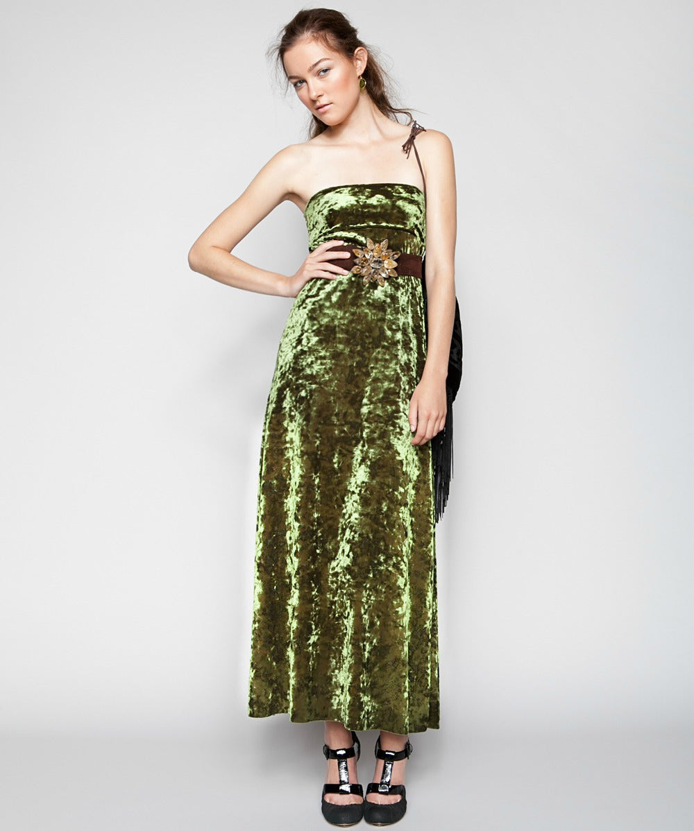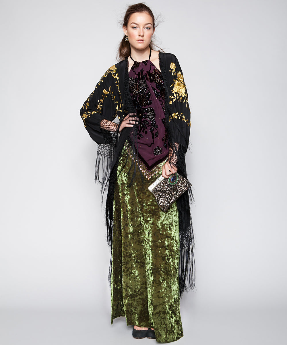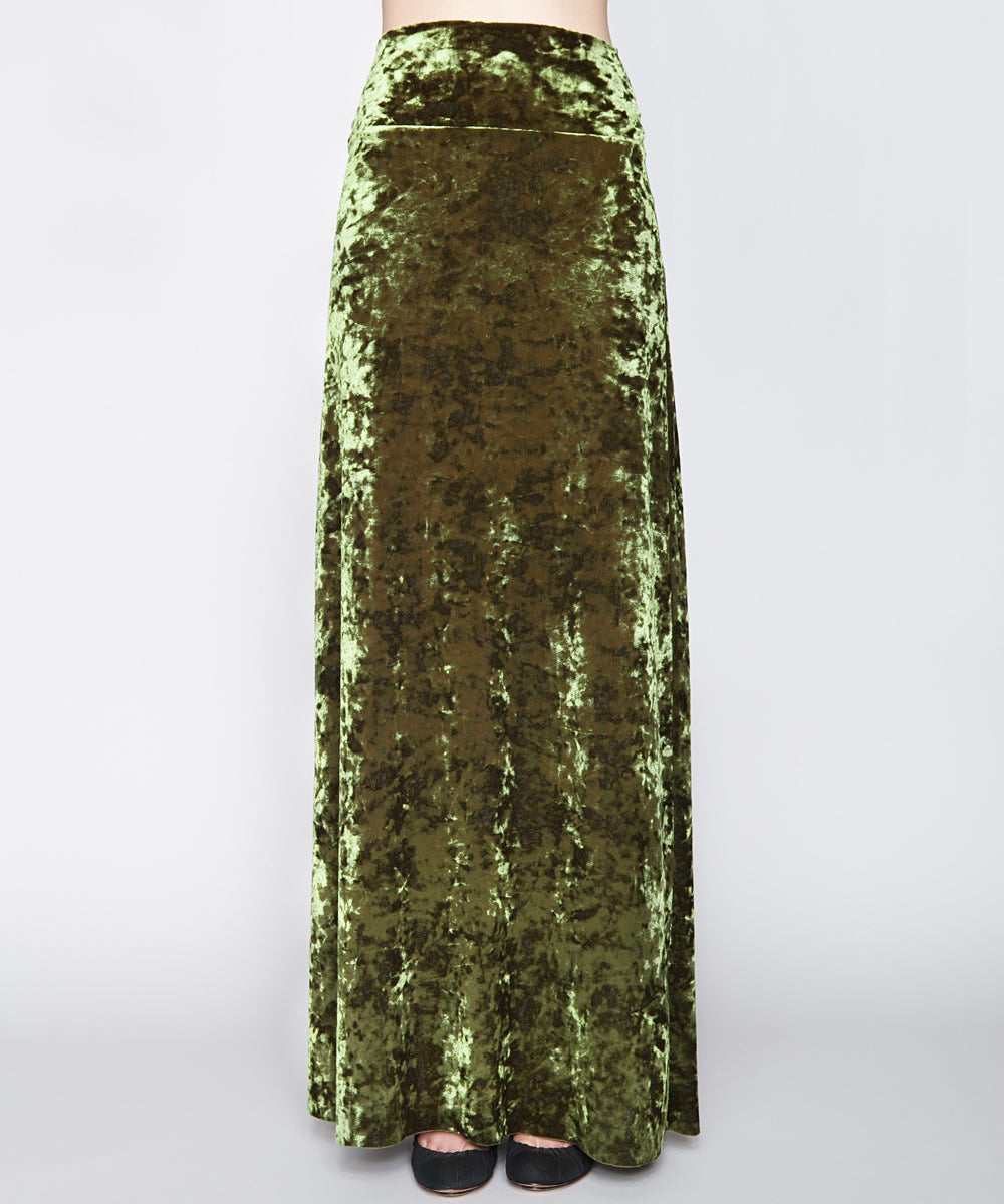THE ARABELLA VELVET MAXI SKIRT IN PEACOCK GREEN